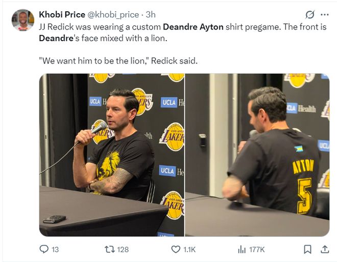賽前雷迪克就談到艾頓穿的訓(xùn)練服胸前有一頭獅子,雷迪克說:我希望德安德烈-艾頓像獅子一樣成為強(qiáng)者。